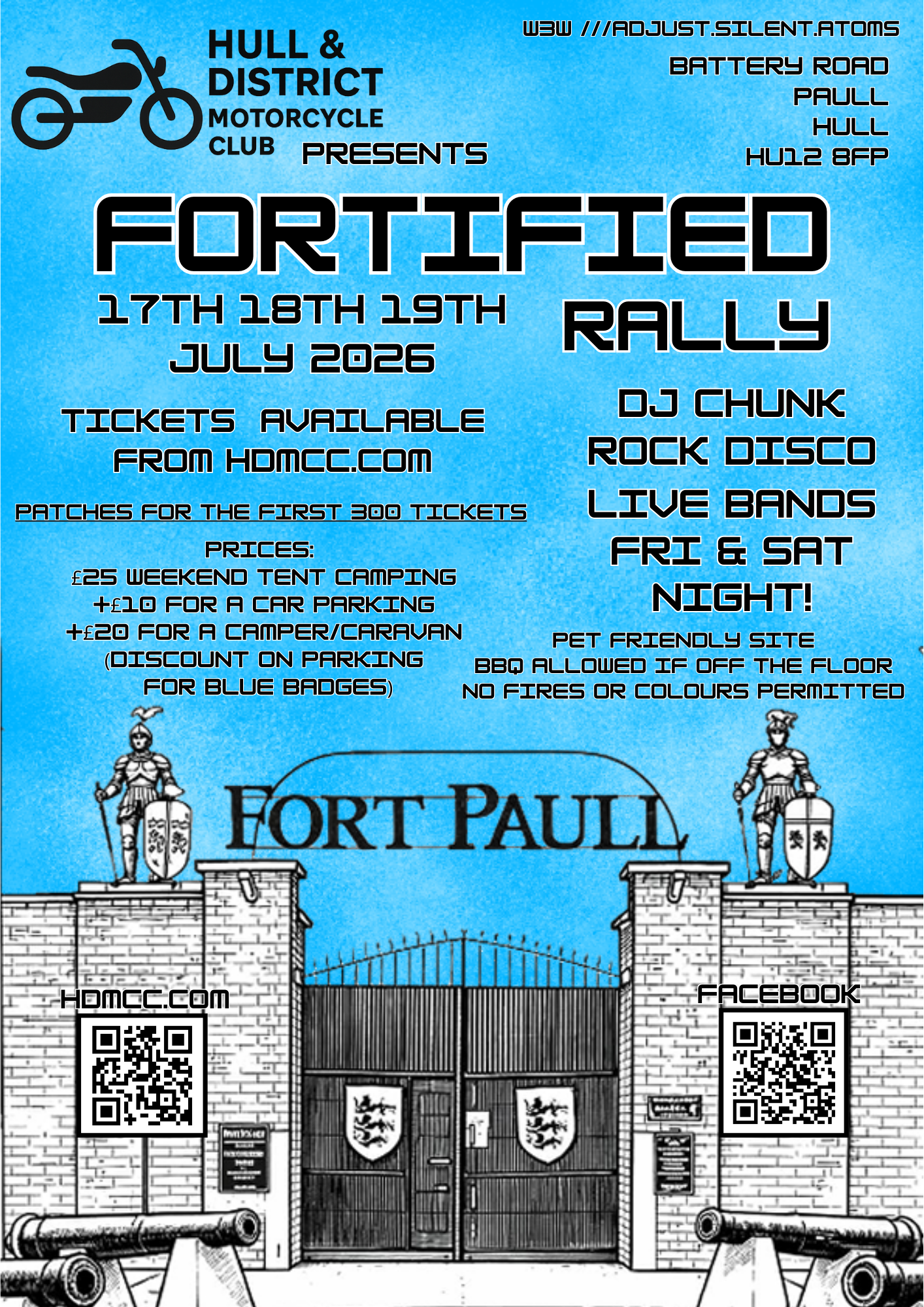 17-19th July 2026 in the Historic Fort Paull, the ticket is for full weekend access to the Rally (including access to the fort & camping inside the fort)